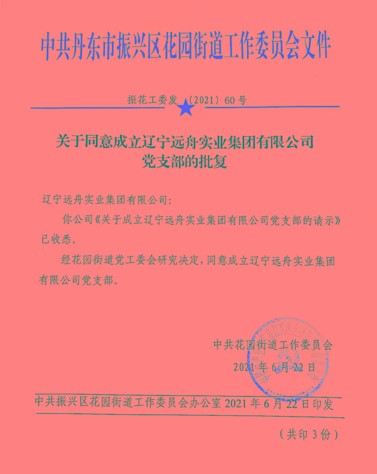 2021年06月———遼寧遠舟實業(yè)集團有限公司黨支部正式成立